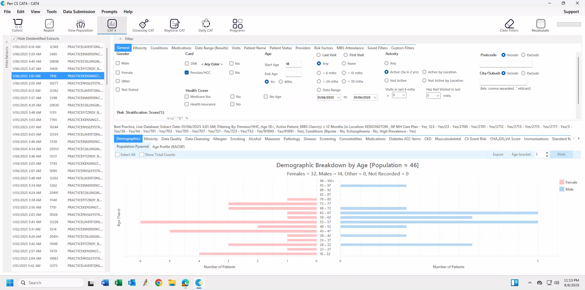 PenCS was used to identify patients with recorded mental health conditions, whether the condition was high- or low- prevalence, concession card status, patient ‘activity’, MBS item numbers billed (mental health care plans, other mental health items or chronic disease management plans) and site of attendance. The Electronic Health Record (EHR) used was Best Practice, the data extract was done on 1st May 2025, a separate extract for each of five clinic sites (Kensington, Paisley Street, Laverton, Fitzroy and Collingwood). The period of interest is the one year from 1st May 2024 to 30th April 2025.
